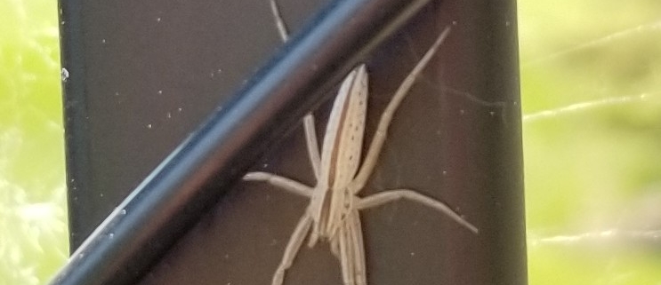 Number 6215 – This is a running crab spider (family Philodromidae) in the genus Tibellus; see Click here for an example. Spiders in this genus also are known as slender crab spiders; they all are harmless to humans.