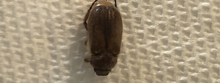 Number 7362. This is a scarab beetle (Coleoptera: Scarabaeidae); it appears to be one of the so-called May beetles/June bugs in the genus Phyllophaga. They are foliage feeders, but seldom do serious damage, but the larvae of some species (‘white grubs’) can be destructive pests of lawns/turf, feeding on the roots of grasses. See Scarab beetle detailed information
