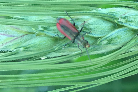 6448. Hello. I found about 6 to 7 of these beetles on my durum wheat that I am growing in my garden. I was wondering if these are a beneficial insect or a pest. If you could identify it, that would be great. Thanks. Humboldt, Saskatchewan. Canada