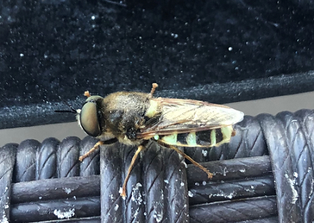 Number 7012. It’s a soldier fly (Diptera: Stratiomyidae) in the genus Stratiomys. They are harmless and may air in pollinating flowers. Click here for more detailed information.