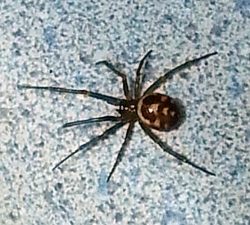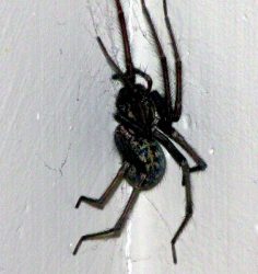 5586 Hello. I found this in our basement today Jan 24,2016. I Live in Ottawa Ontario. It’s about the size of a dime with the legs stretched out. I have found 2 similar in my garage this summer. Just wondering what it is because it has a similar body type as a black widow but without tell tale markings. Thank you so much. Thomas This is a cobweb/comb-footed spider (family Theridiidae) in the genus Steatoda, likely S. borealis; see http://tinyurl.com/hcfxopo for an image. These spiders usually are shy and non-aggressive, but can bite if handled carelessly. Ed Saugstad, retired entomologist; Sinks Grove, WV.