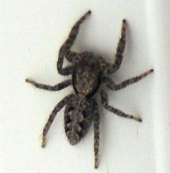 5654 I thought this was a jumping spider, though it never jumped, but then I was told it was a brown recluse. I noticed there are no brown recluses on your site, so it thought if this is one, it might be a good addition to your list. The spider came around the open window every afternoon after I noticed some fruit flies in my dorm room. I finally had it squished, because it was freaking out my roommate, but it was not aggressive.