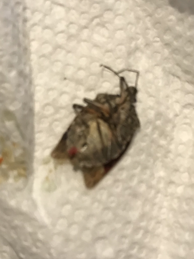 7164.        This bug woke me up as i was sleeping in my bed. it was on the back of my shoulder. I squished it with the paper towel it now is on. Is it a stink bug or a kissing bug? Thanks. Surrey, British Columbia. Canada