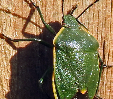 Number 6321 This is not a beetle, but a stink bug (Hemiptera/Heteroptera: Pentatomidae) in the genus Chlorochroa, Click here for an example. There are at least seven species in this genus native to British Columbia.