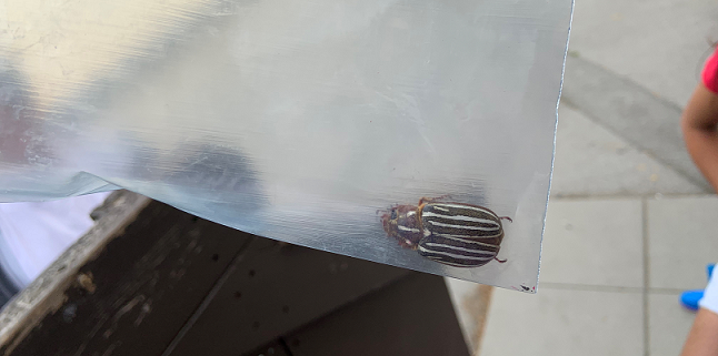 Number 6416. This is a ten-lined June beetle, Polyphylla decemlineata (Coleoptera: Scarabaeidae), their larvae can be pests on tree farms – Click here for more detailed information.