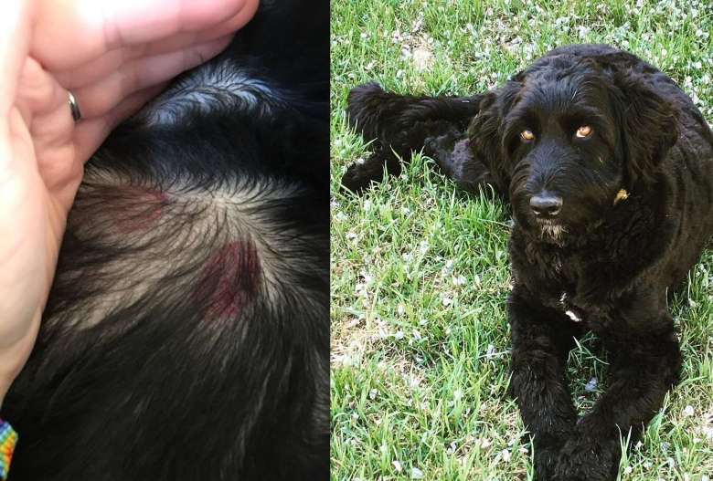 Nicole Dinstel’s dog, Doug, had red, bull’s-eye bug bites after a walk in Laurier dog park May 24. (Nicole Dinstel) (Stoppestinfo).