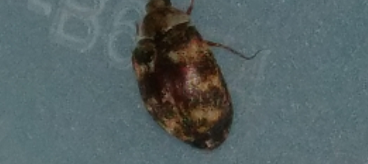 Number 6354 This looks like a varied carpet beetle, Anthrenus verbasci (Coleoptera: Dermestidae). See Click here or more detailed information and Click here elsewhere on this site for some control recommendations.