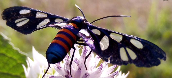 Number 6351 This moth is one of the so-called ‘wasp moths’ in the subfamily Arctiinae (Lepidoptera: Erebidae); it appears to be in the genus Amata – click here for an example