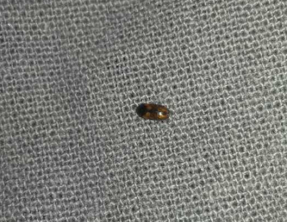 Number 6499. This looks like Reesa vespulae (Coleoptera: Dermestidae). Known as the wasp nest dermestid, it often is found in bird and wasp nests outdoors. Indoors, it can be a pest of museum specimens (especially dry insects), stored seeds and dried plant material.