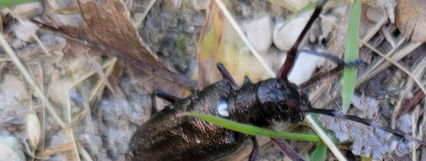 Number 7364. This is a white-spotted sawyer beetle, Monochamus scutellatus (Coleoptera: Cerambycidae). They attack primarily dead or dying trees; see White-spotted sawyer beetle detailed information